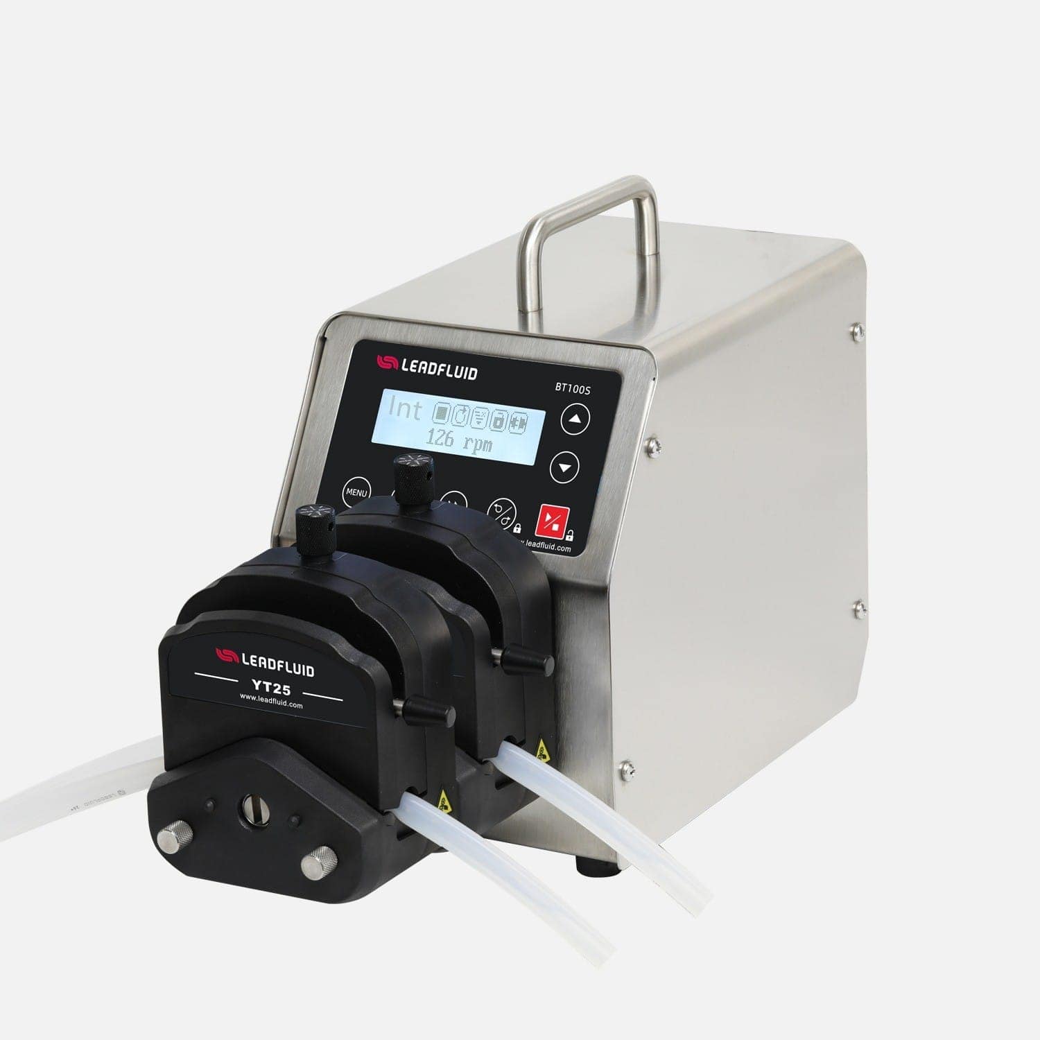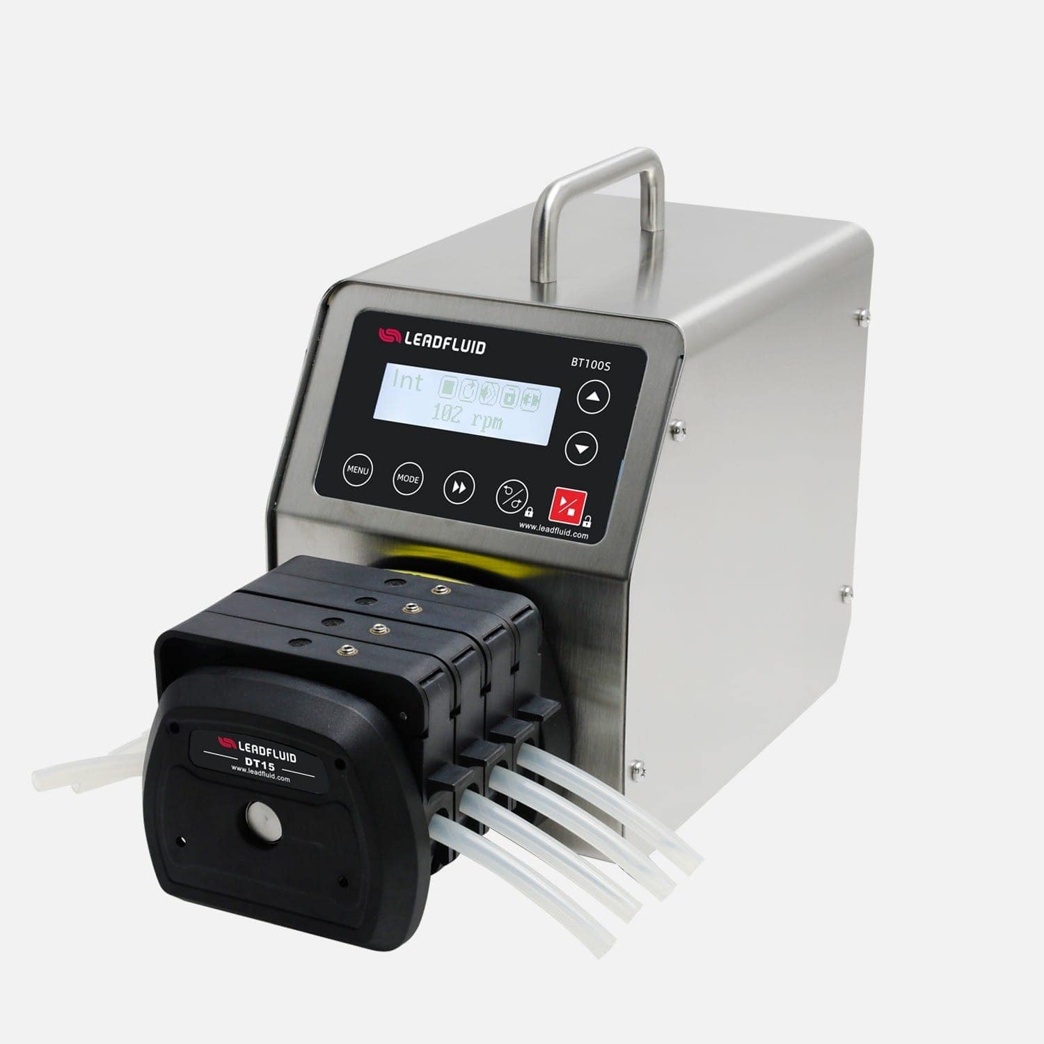 В перистальтических насосах BT100S с регулируемой скоростью используется импортный центральный процессор, высококачественный шаговый серводвигатель, точность регулирования скорости составляет ±0,5%. С помощью программного обеспечения Lead Fluid APP можно удалённо управлять насосом и отслеживать его работу в режиме реального времени. Связь RS485, протокол Modbus, возможность подключения к компьютеру, ПЛК, преобразователю частоты, человеко-машинному интерфейсу с помощью различных режимов передачи сигналов для достижения систематического централизованного управления.
